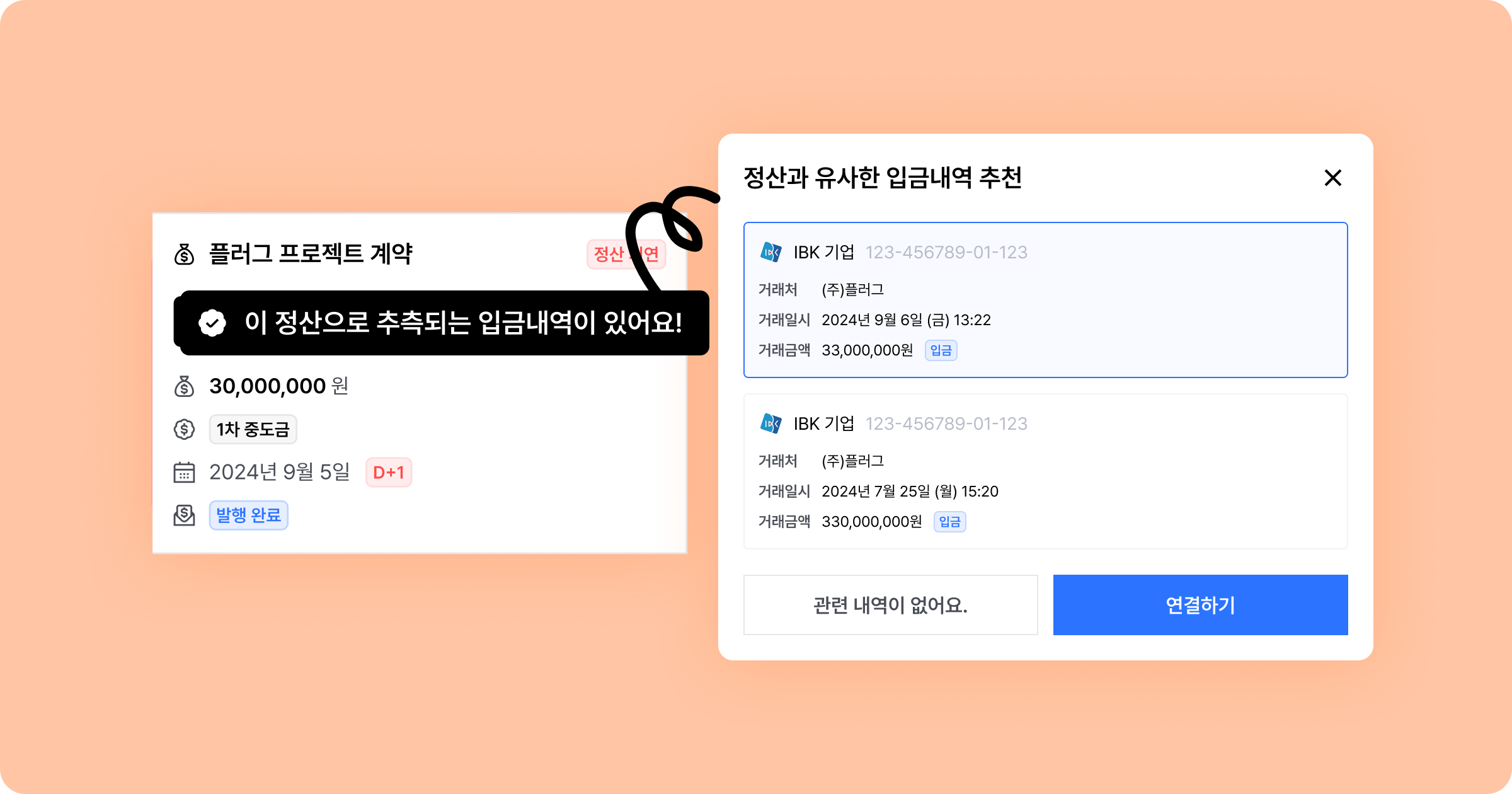 연동을 해두면 자동 매칭으로 누락과 지연을 줄이고, 중요한 거래를 놓치지 않아요!