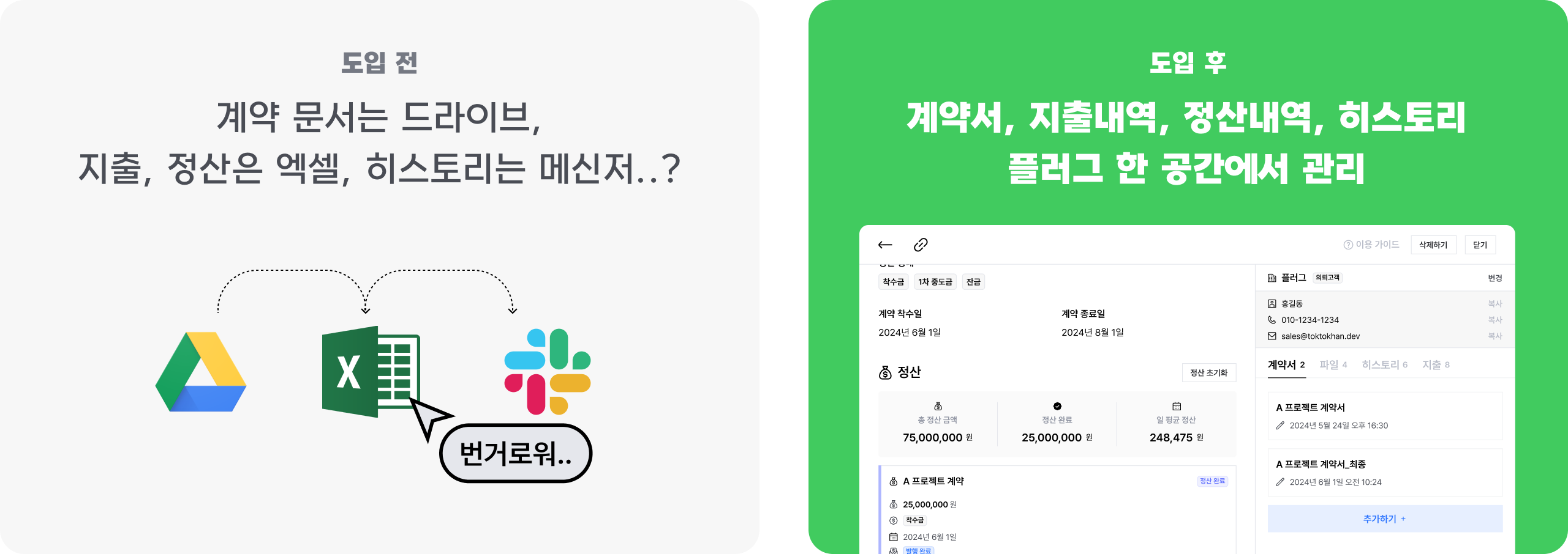 산발된 계약관련 내용들을 한 공간으로 통합하세요! 실수는 줄어들고, 효율은 높아져요.