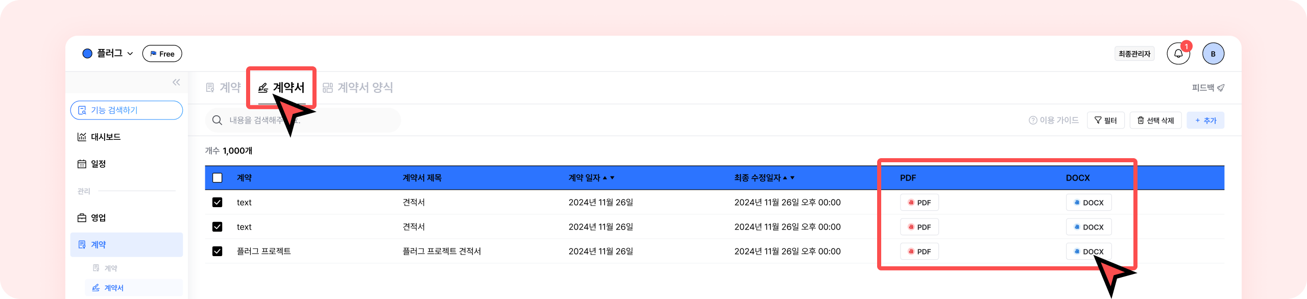 계약서 리스트 페이지에서 다운로드 받고자 하는 리스트에서