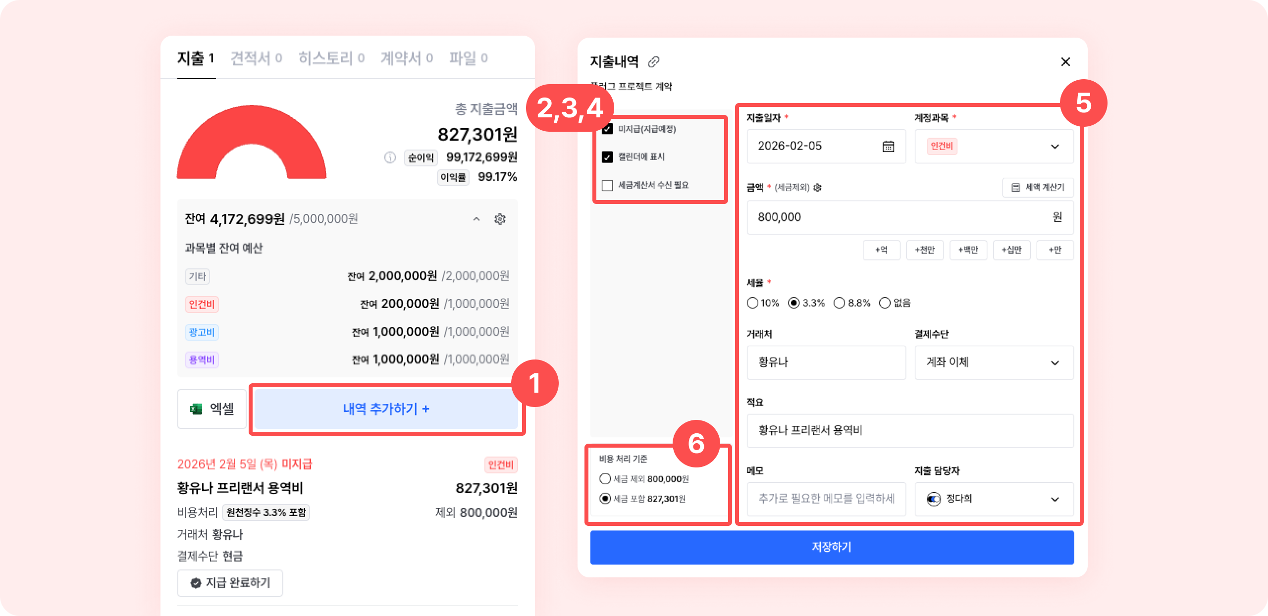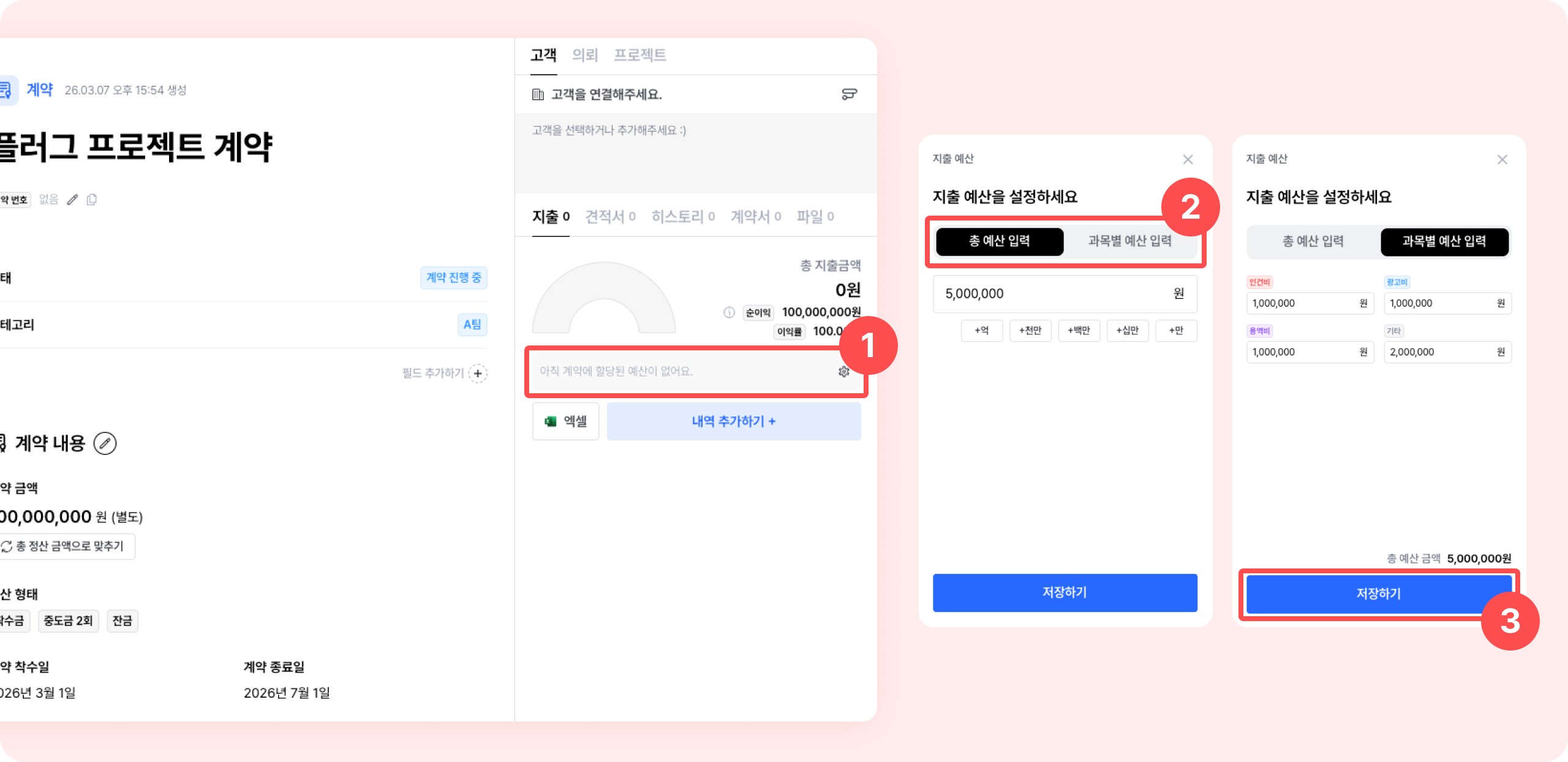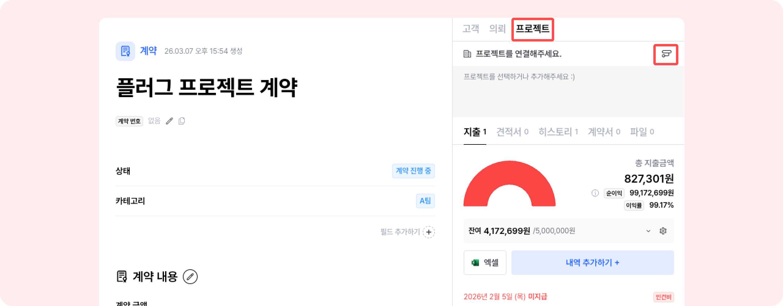 계약 별로 지출 예산을 입력해 순이익을 보호할 수 있어요.