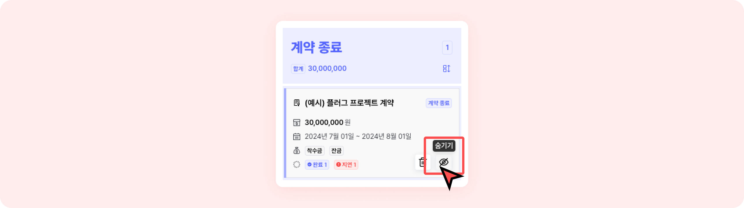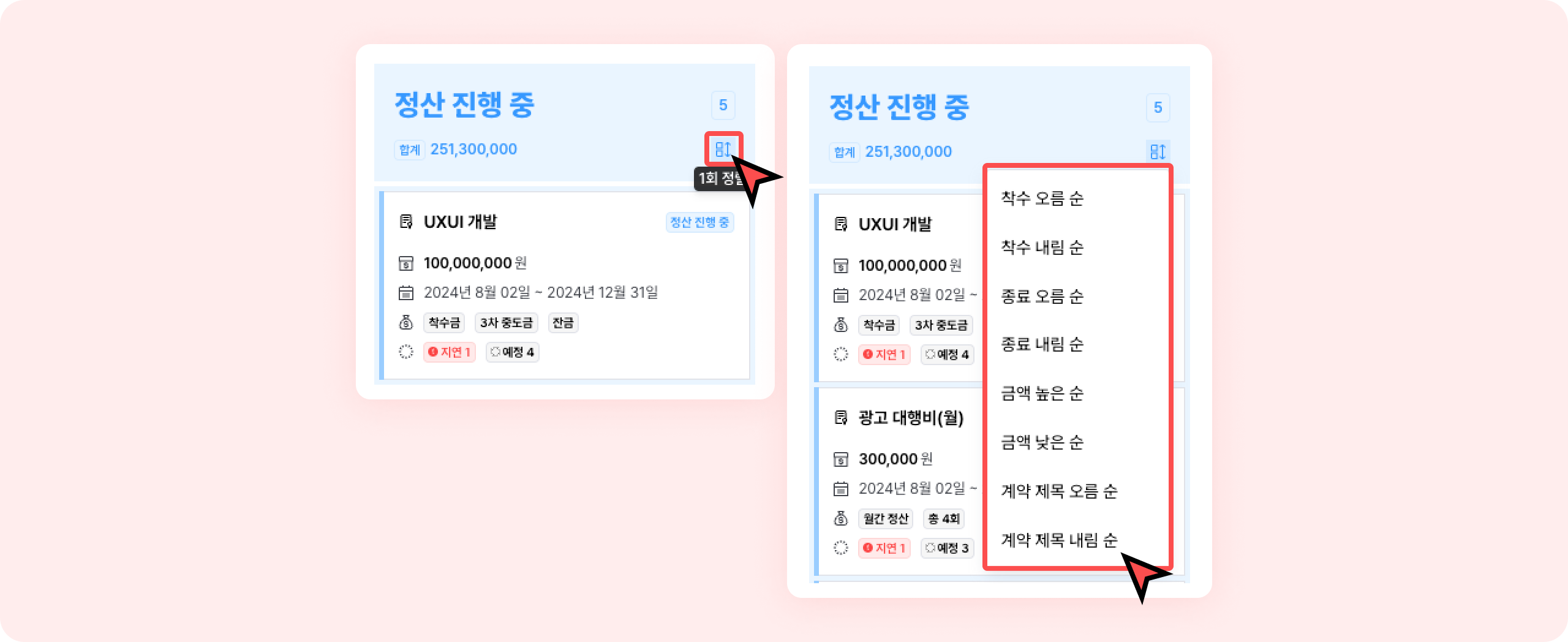 계약 상태 별로 순서 정렬을 변경할 수 있어요.