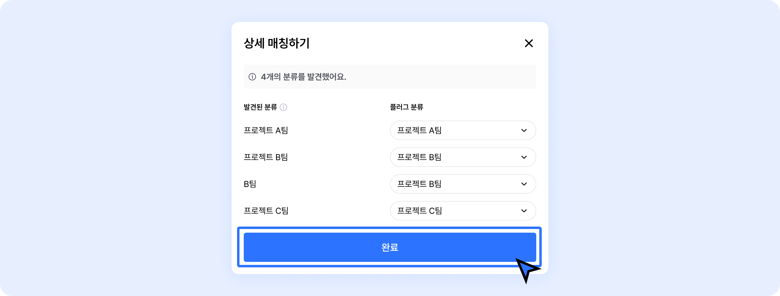 필드 매칭과 상세 매칭을 모두 완료했다면