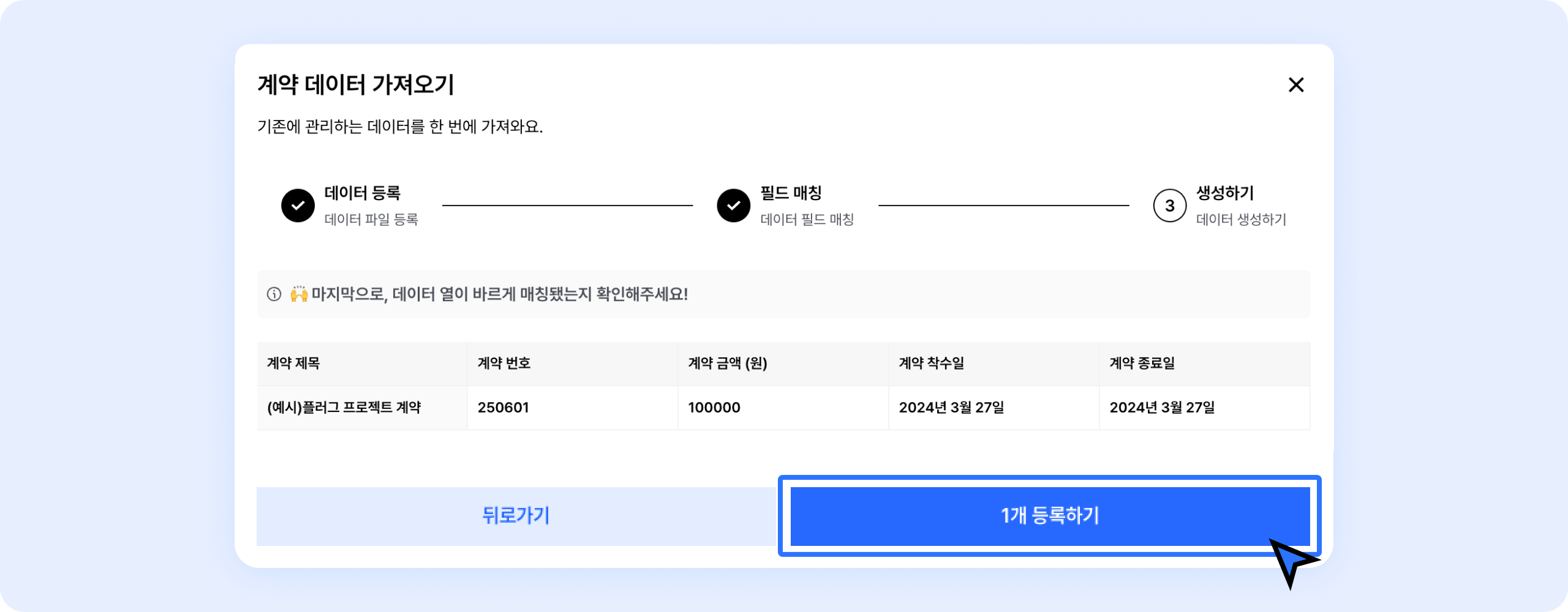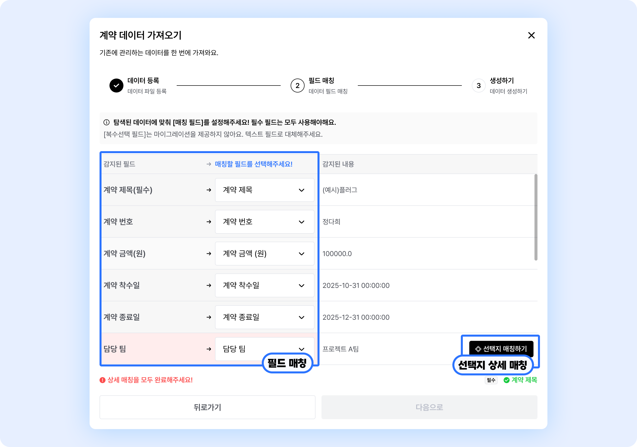 계약 데이터를 한 번에 업로드할 수 있어요. 업로드할 계약 필드를 설정해주세요.