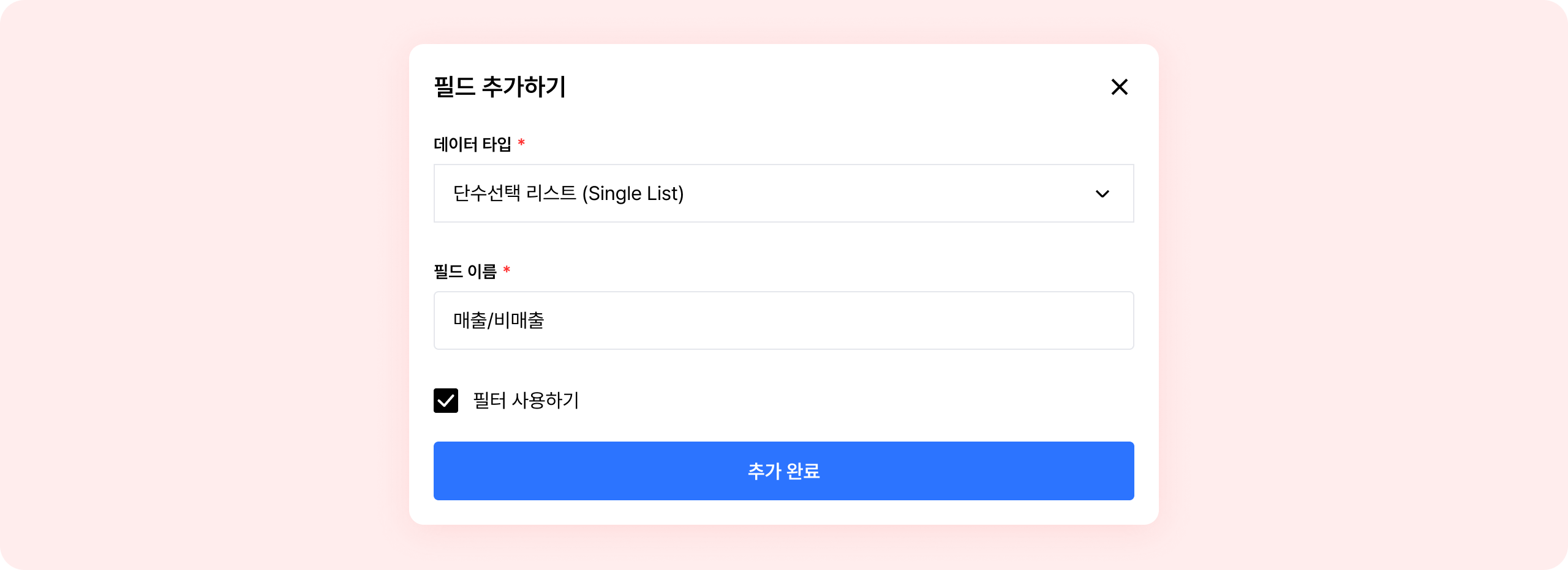 추가 완료버튼을 클릭하세요.아래 타입은 '필터 사용하기' 옵션을 사용할 수 있어요.