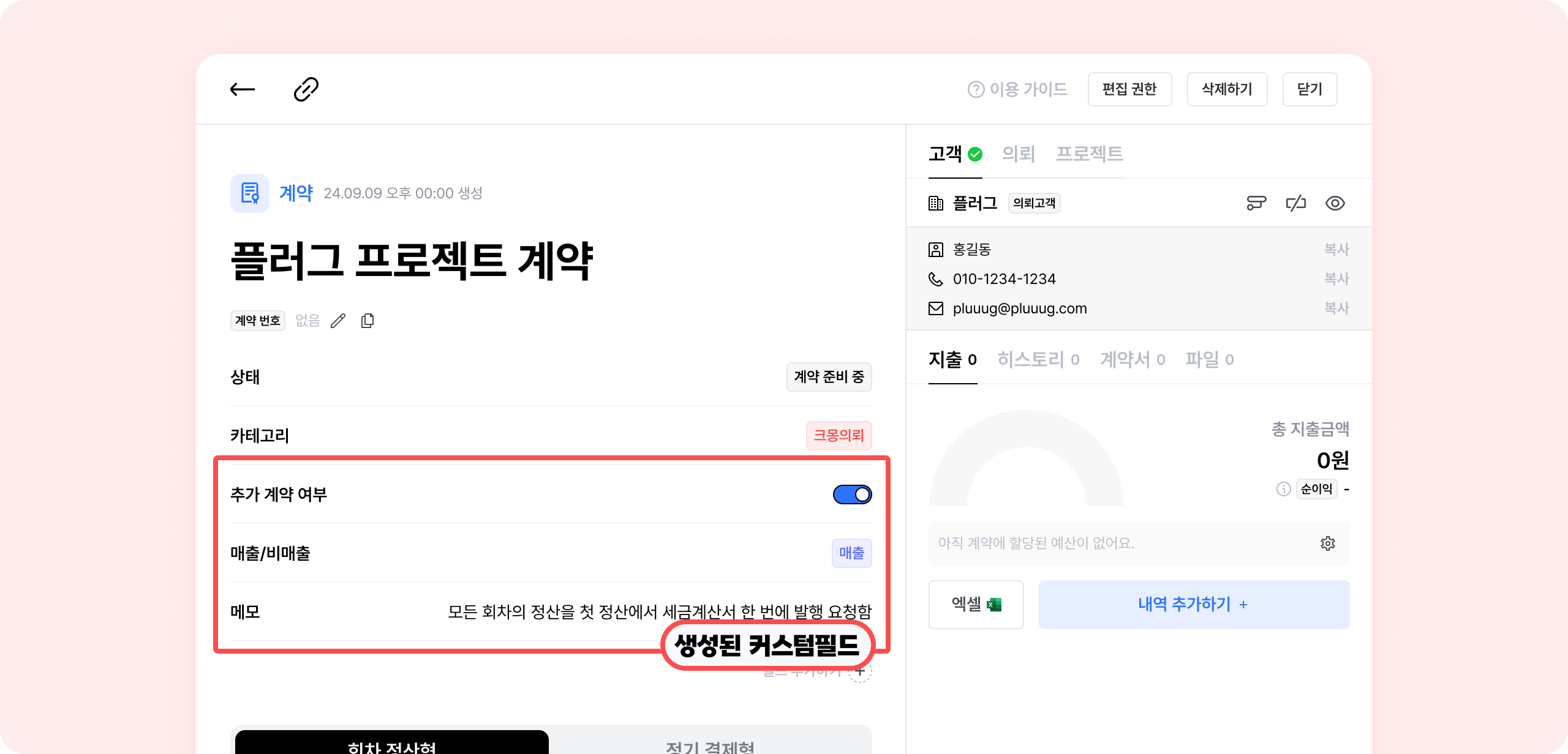 생성한 커스텀필드를 활용해 내용을 정리해보세요.