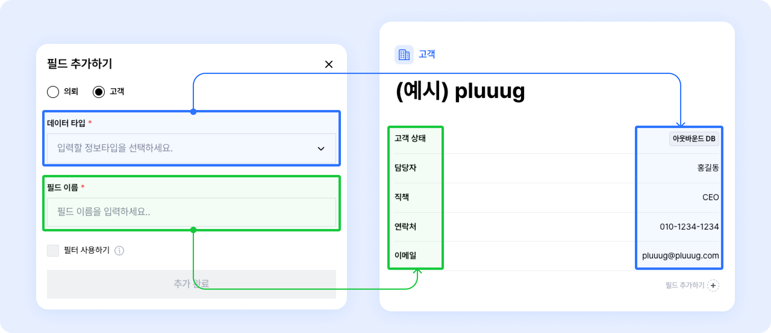 모든 고객 데이터에 적용되는 필드를 추가할 수 있어요.