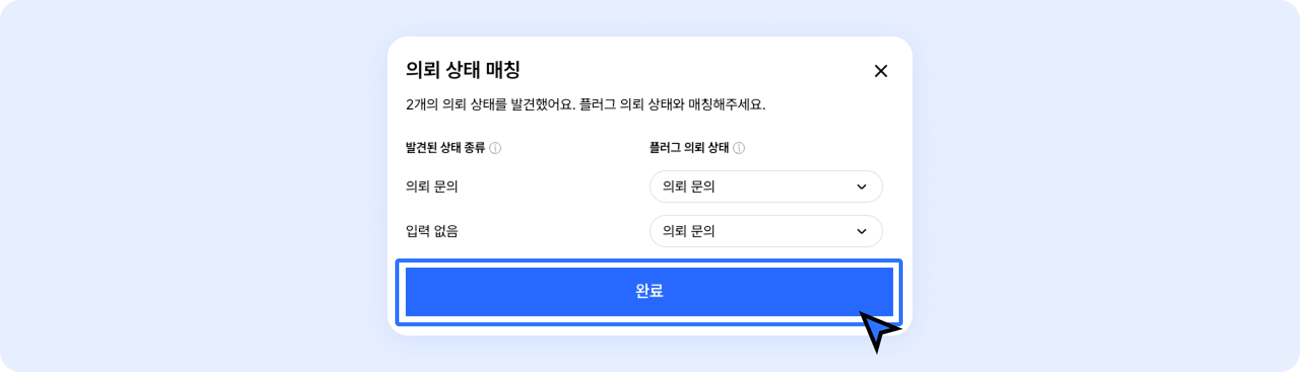 상태 혹은 단수선택 필드는 하위 종류에 맞게 '상세 매칭'을 진행해야해요.