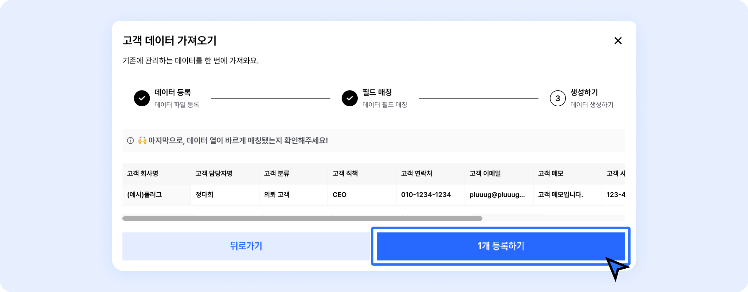 예를들어, [고객] 데이터 안에서는 '담당자명', '이메일', '연락처' 등이 될 수 있어요.