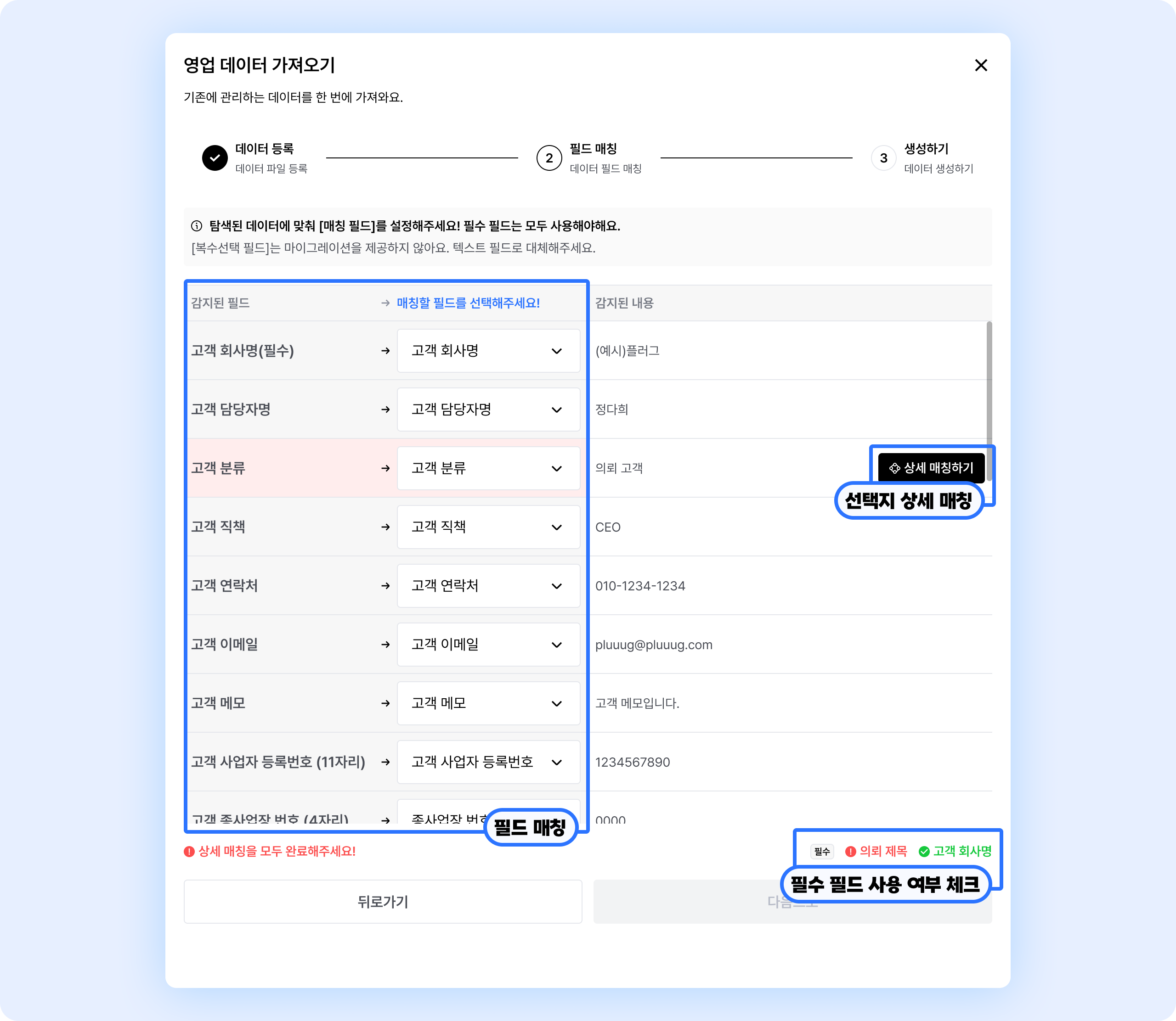 필드 매칭과 상세 매칭을 모두 완료했다면
