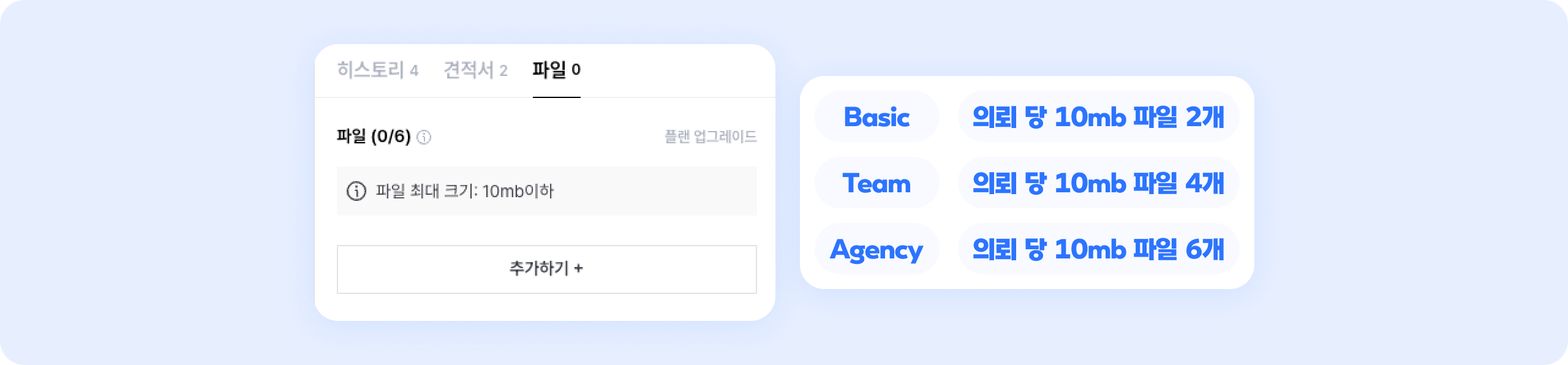 플랜 별로 업로드할 수 있는 파일 개수가 정해져있어요.