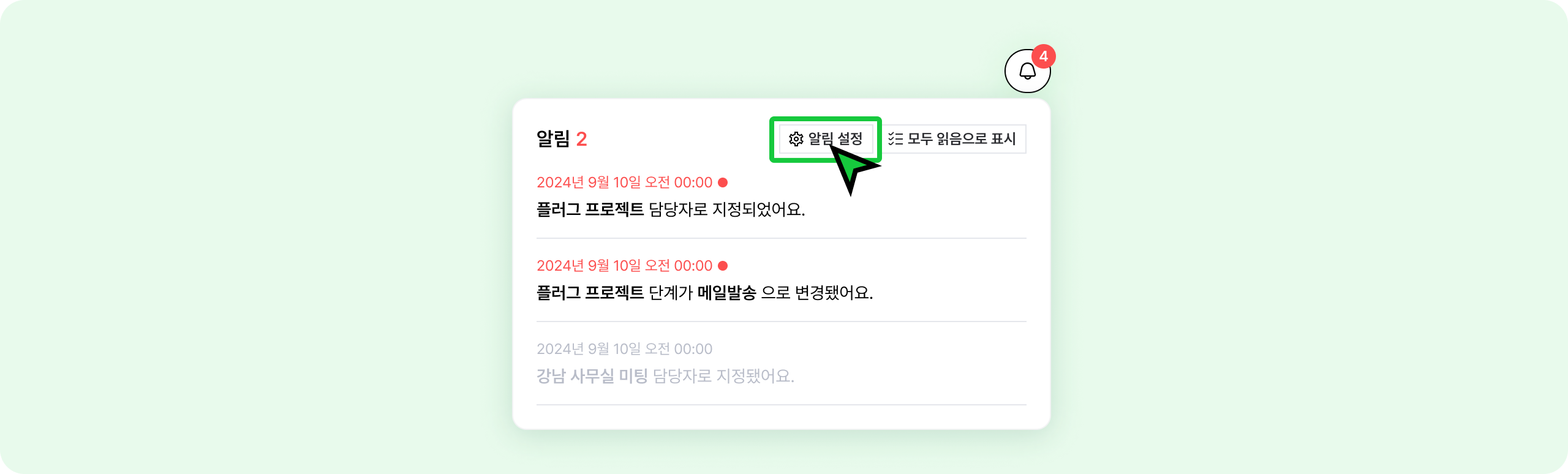 알림 기능은 Team 플랜 이상부터 사용 가능해요.
