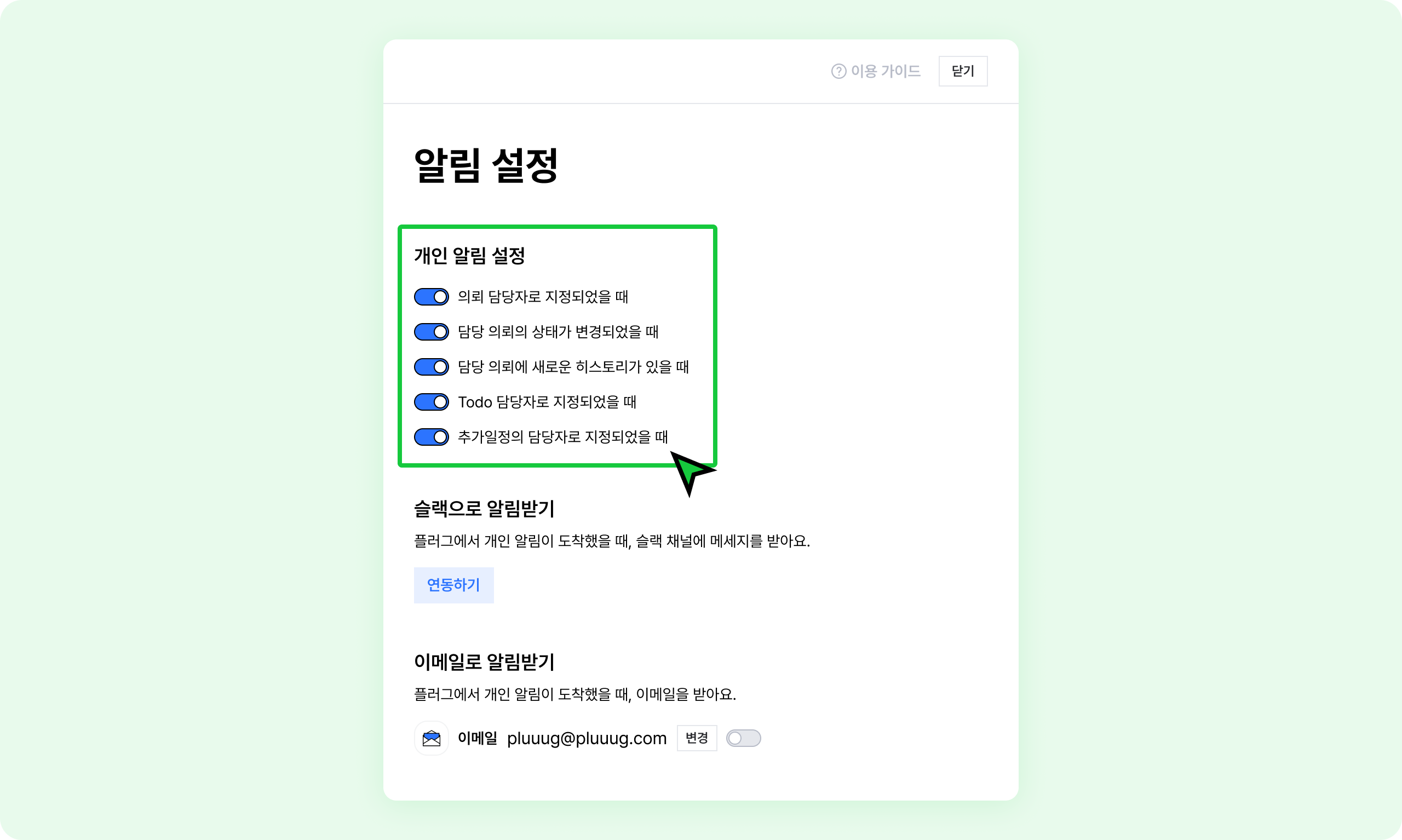 개인 알림 설정을 변경할 수 있어요.