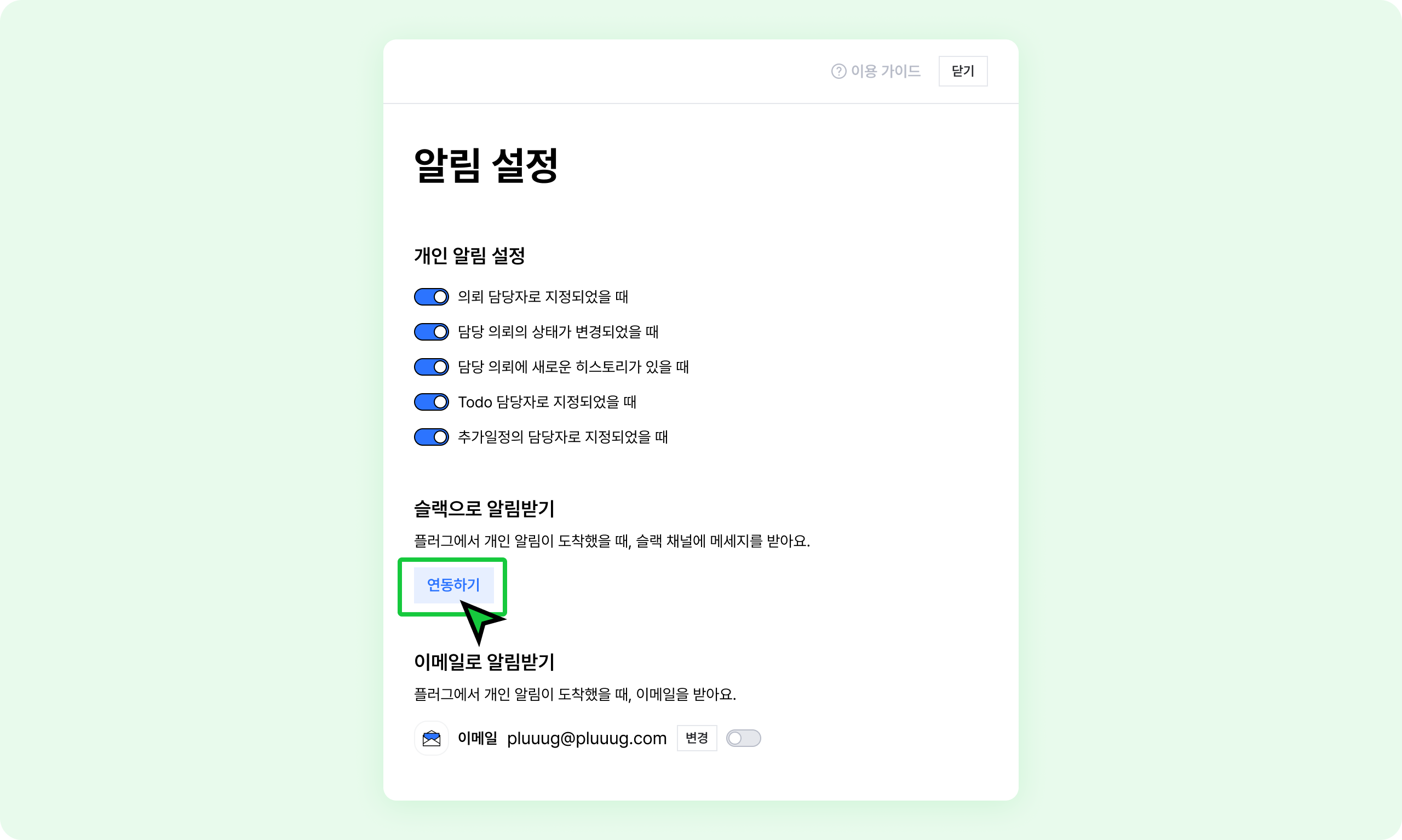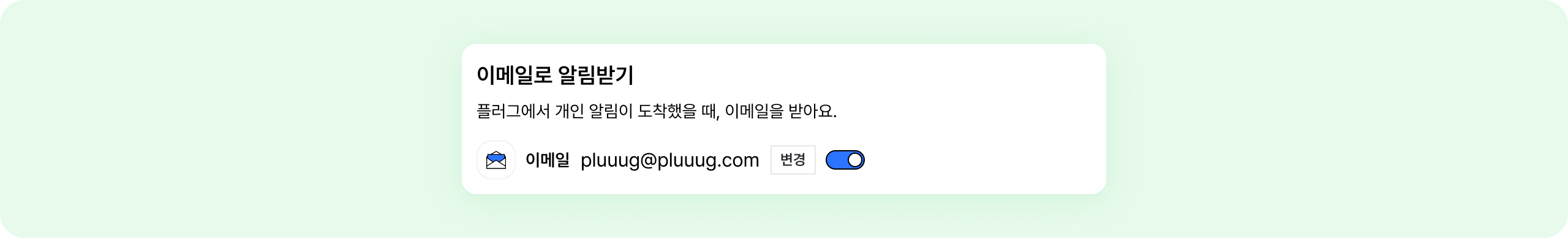 이메일 주소를 확인하고, 우측 토글을on으로 설정하세요.