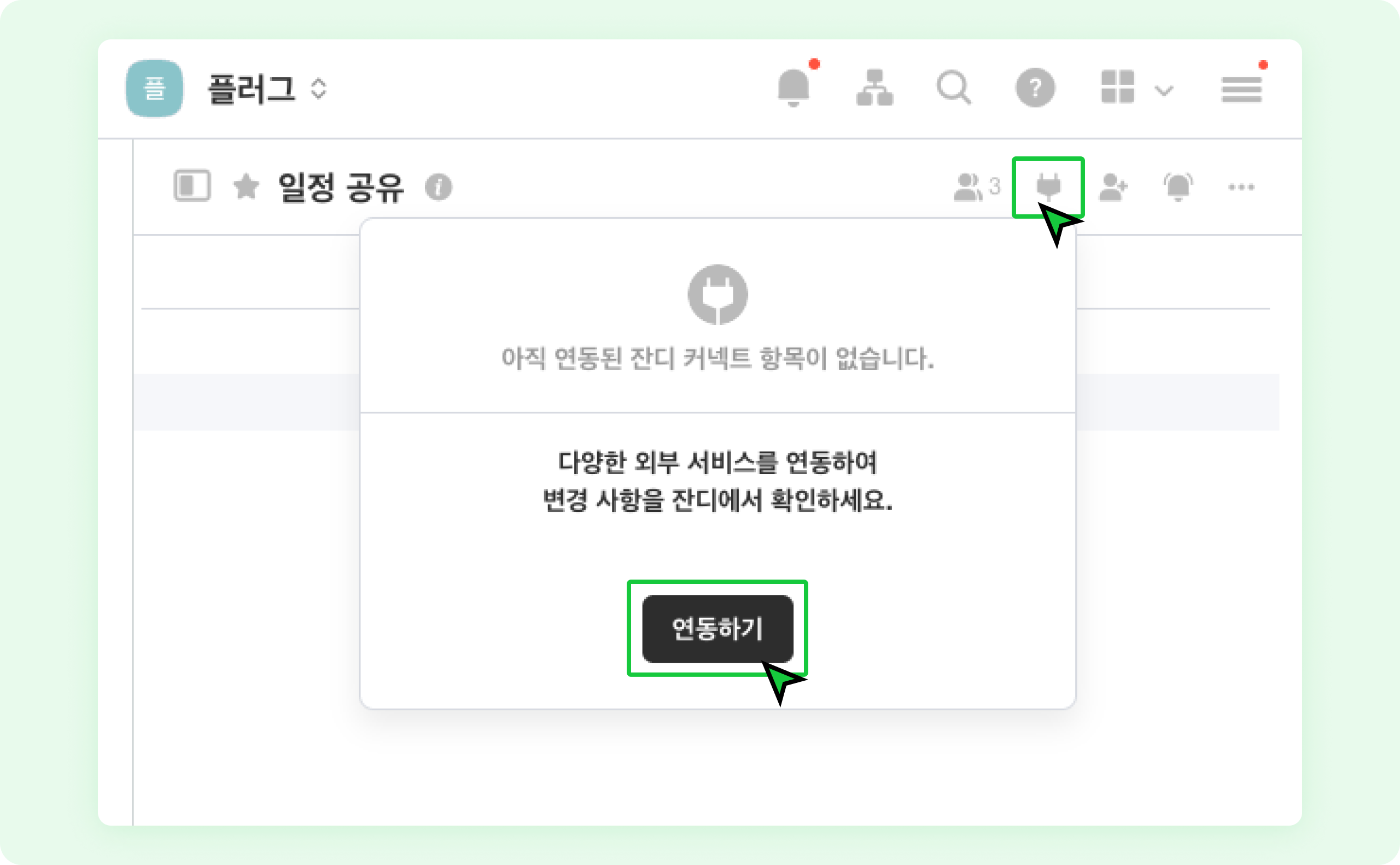 잔디워크스페이스 > 토픽에서 우측 상단잔디 커넥트버튼을 클릭하세요.