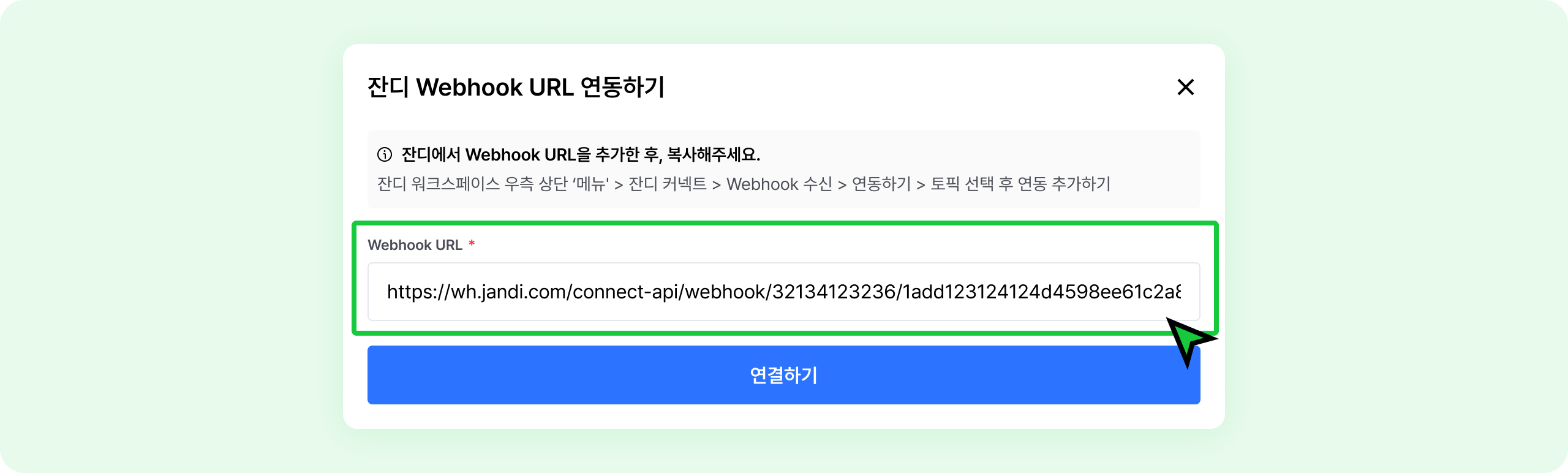 Webhook URL이 생성되면, 우측