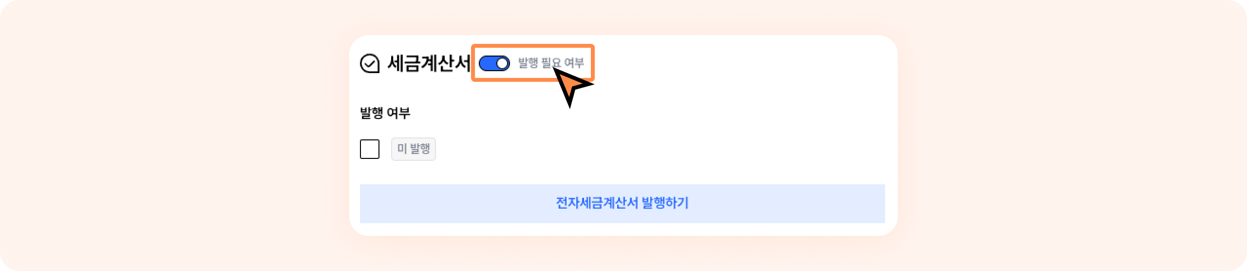 정산 페이지 내 세금계산서 섹션 우측에 on/off로 해당 정산 건에 발행이 필요한지 체크해두세요.