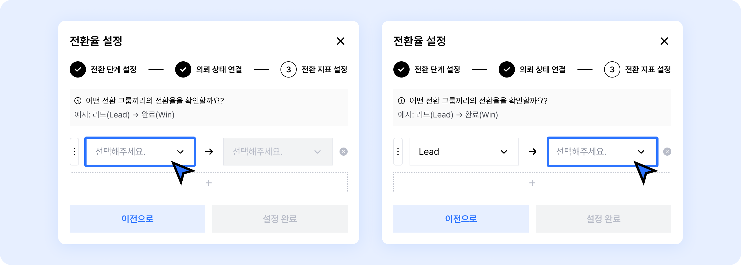 등 앞선 단계에서 뒤에 그 어떤 단계라도 설정해서 전환 수치를 확인해보세요.