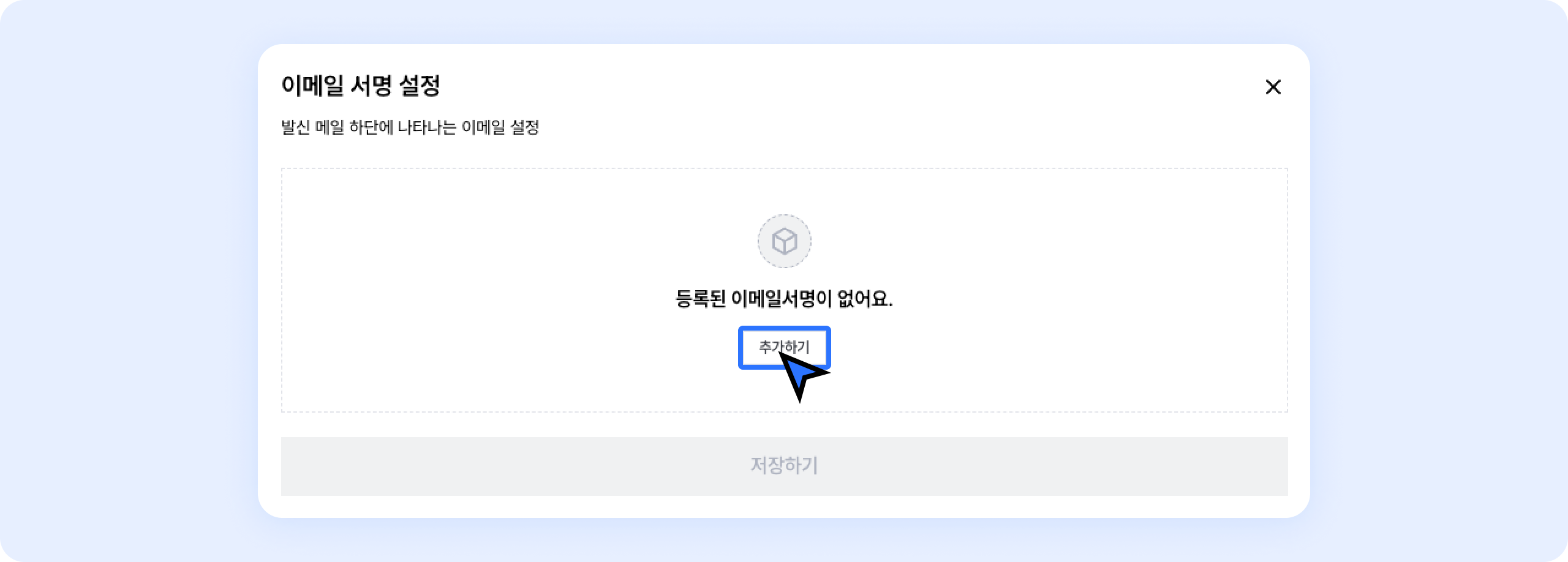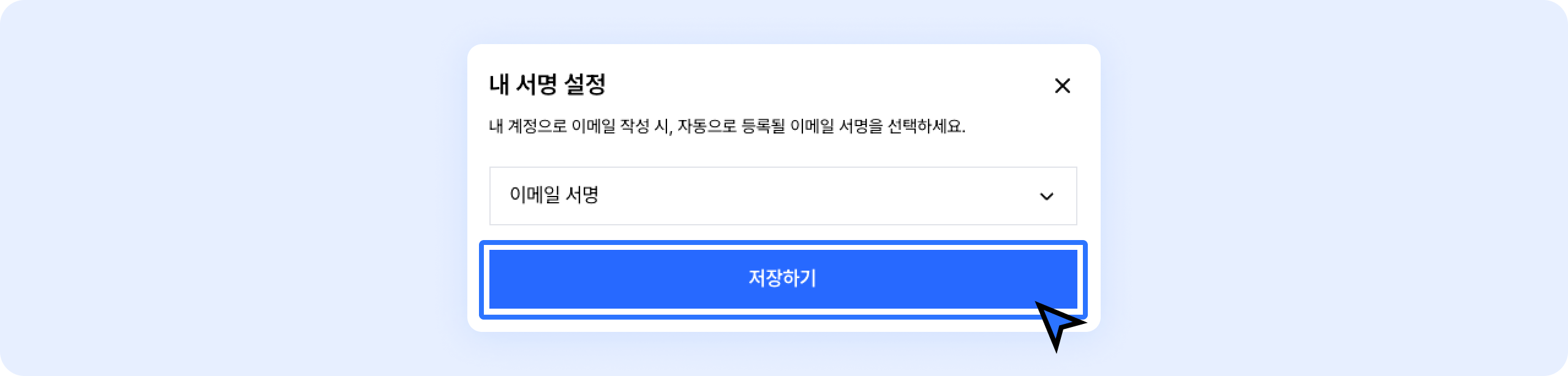 이메일 발송 시, 내 계정에서 기본으로 사용할 서명을 설정할 수 있어요.