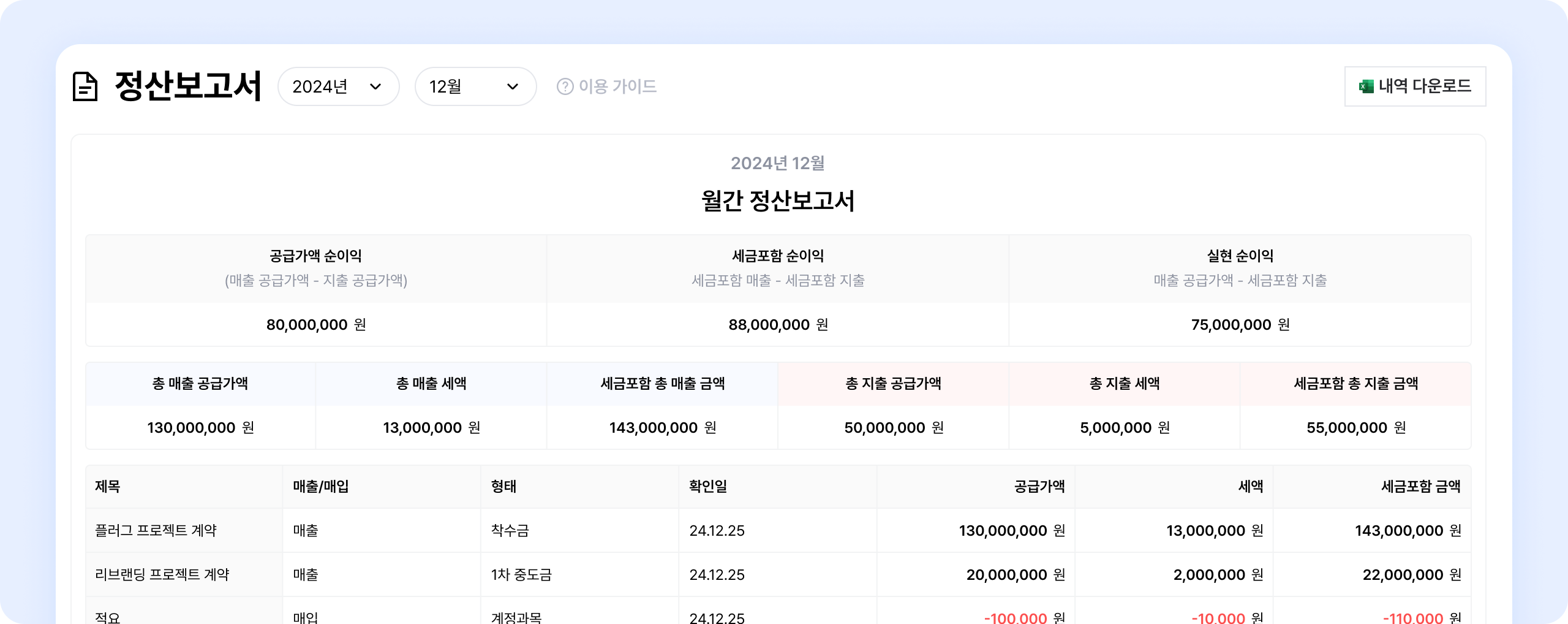 공급가액 순이익 (매출 공급가액 - 지출 공급가액)