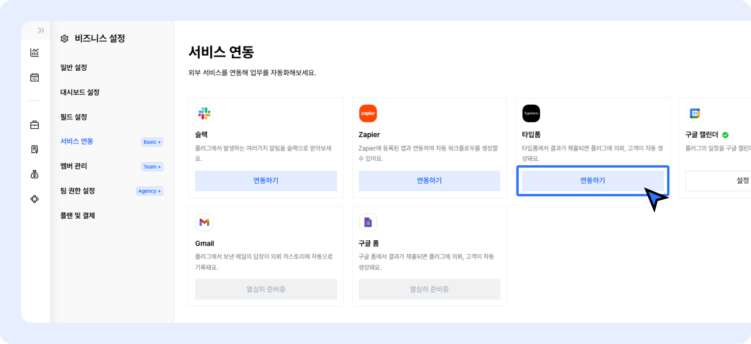 아직 타입폼에서 폼을 생성하지 않았다면, 먼저 폼을 생성한 후 연동을 진행해주세요!