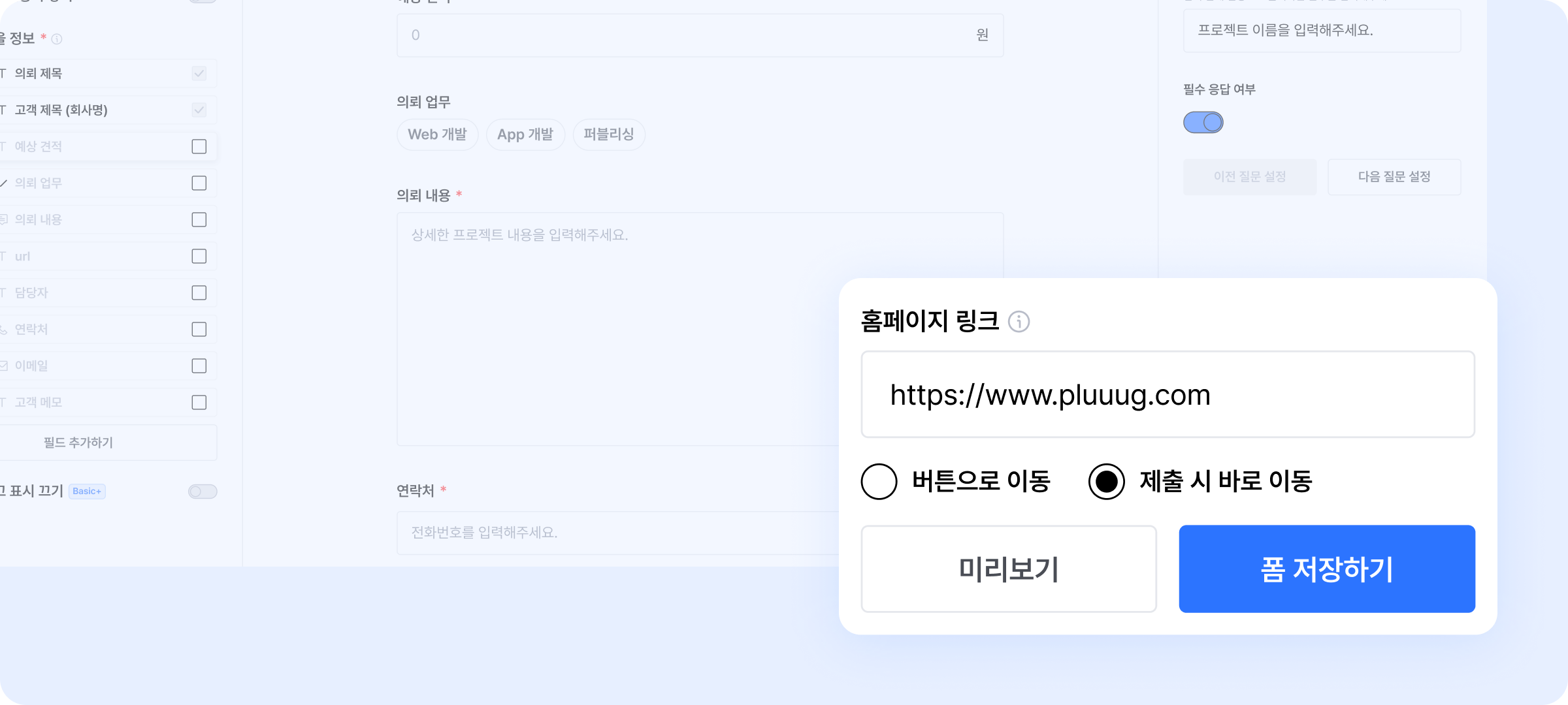 홈페이지 이동 링크에 제출 완료 시 이동할 페이지 링크를 입력하세요.페이지 링크는 광고 관리자에서 '전환' 트래킹이 가능한 소유 도메인으로 입력하세요.