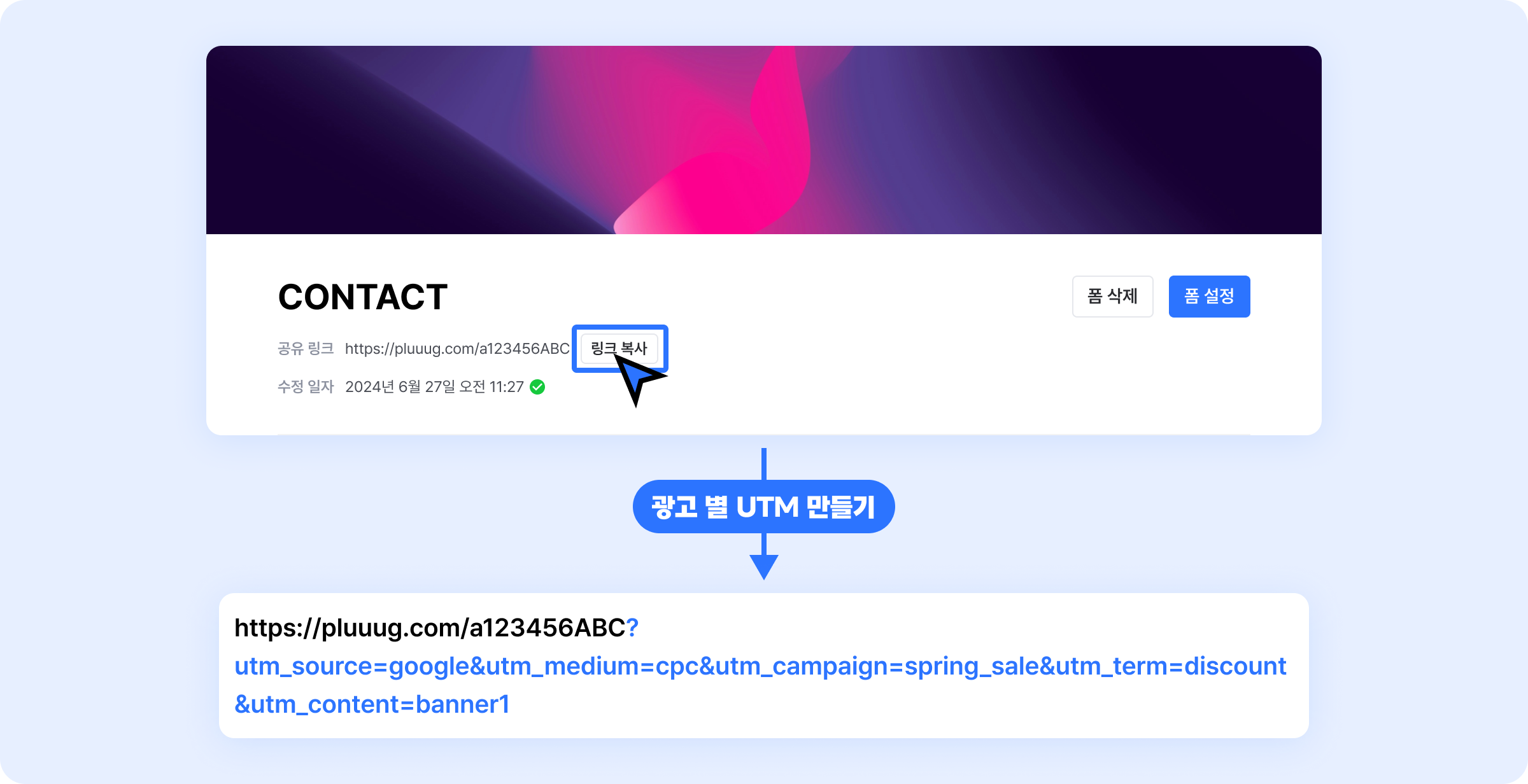 생성한 폼 링크를 각 광고에 맞춰 utm을 적용하세요.