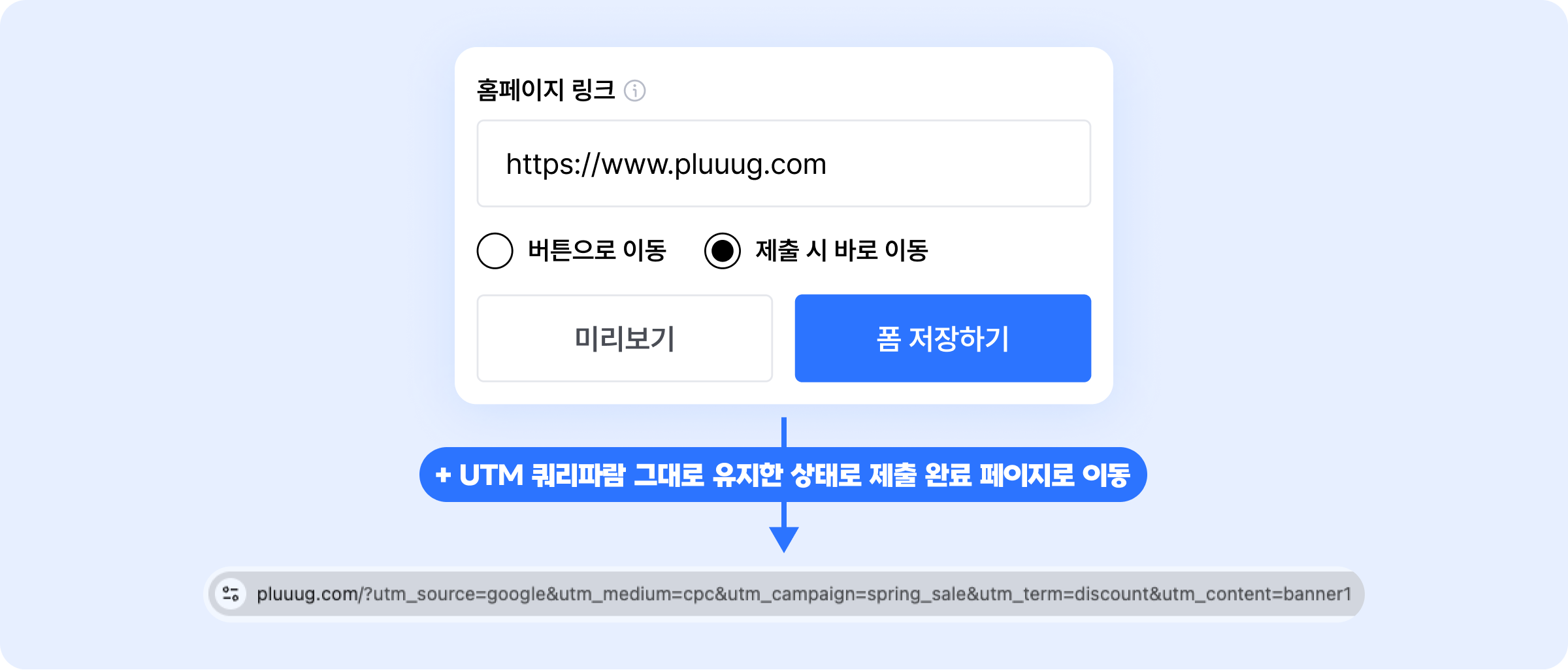 이동한 링크에서 폼으로 들어올 때 가진 utm 쿼리파람이 그대로 유지되어 전송되어 광고관리자에서 유입 경로를 체크할 수 있어요.