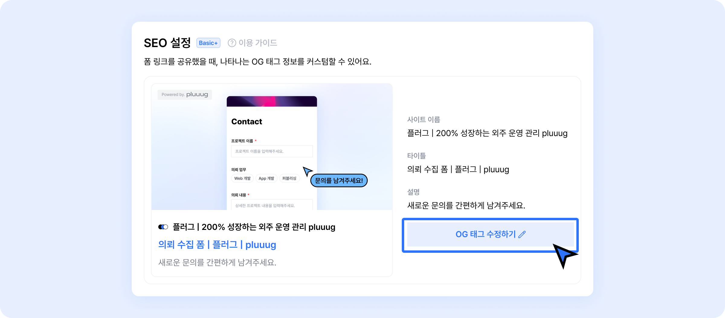 폼 SEO OG 태그를 변경할 수 있어요.