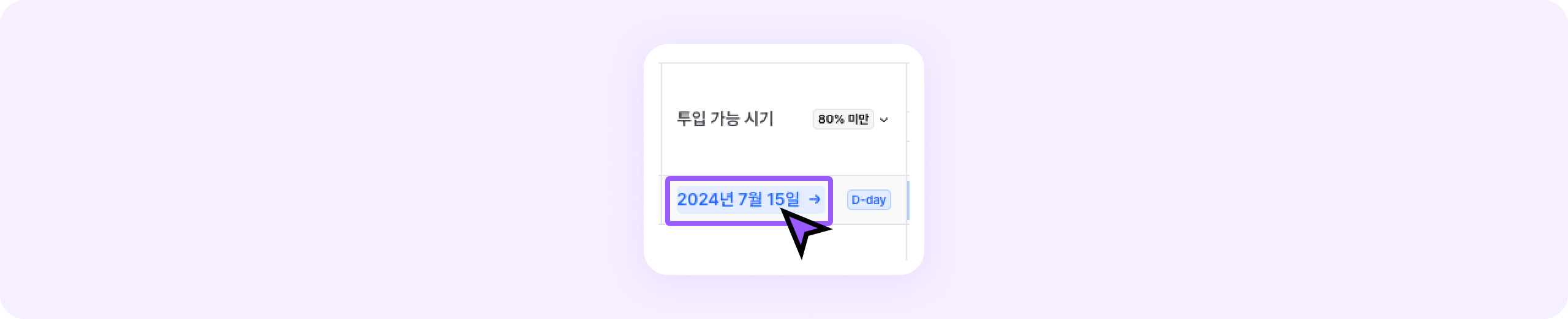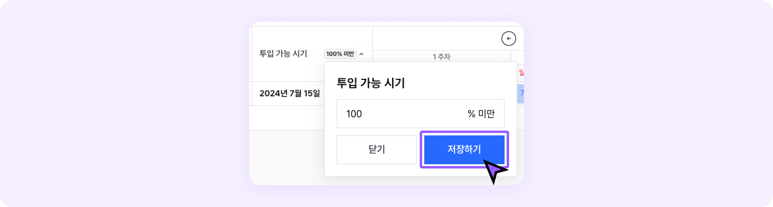 투입 가능 시기 우측 N% 미만을 클릭하고, 수치를 입력한 후 저장하기 버튼을 클릭하세요.