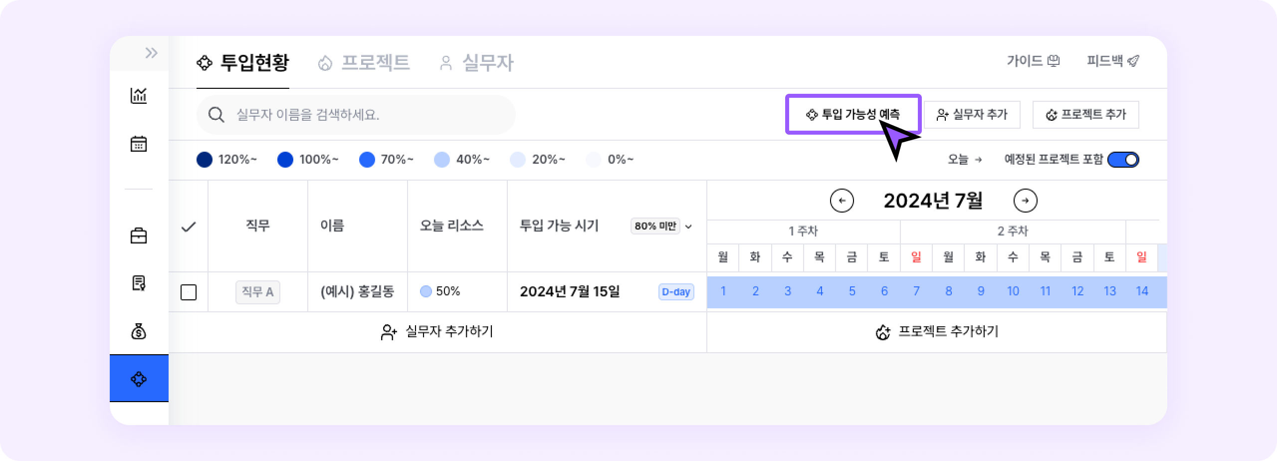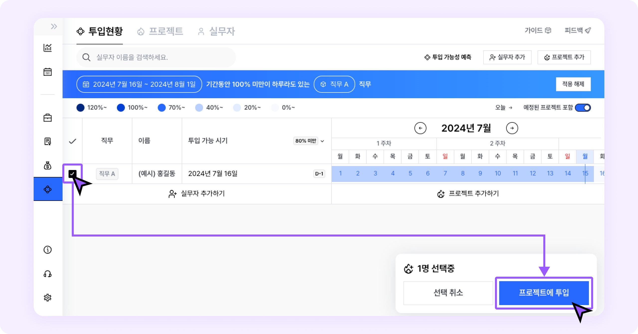 투입가능성 예측 결과 페이지에서 바로 실무자를 투입하려면