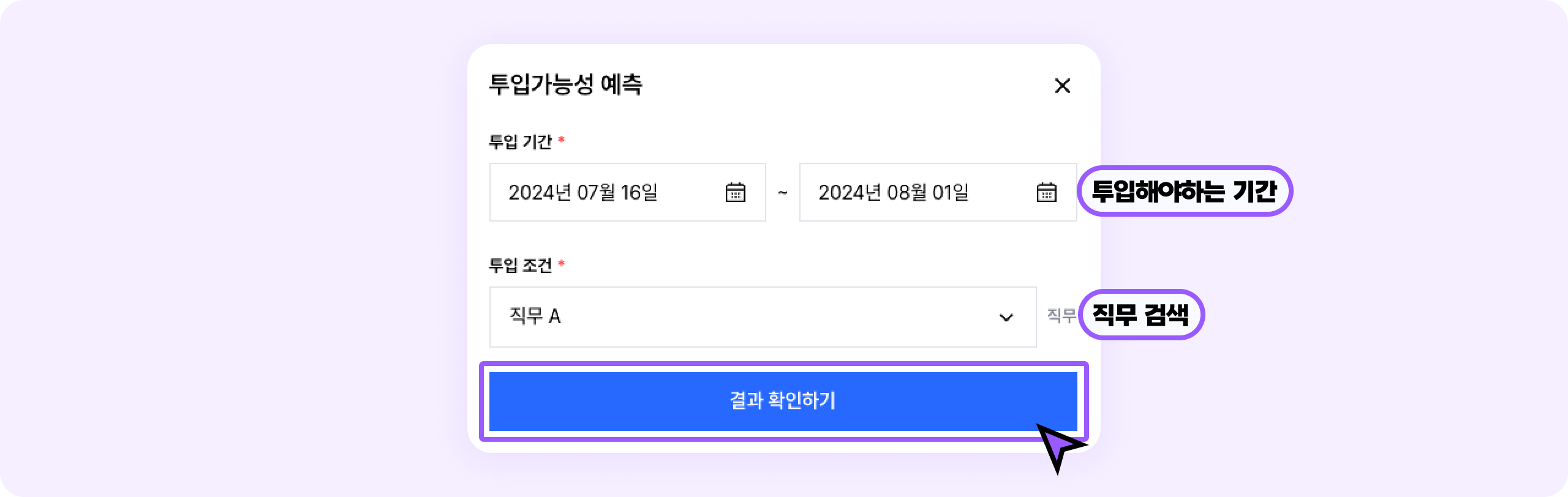 어떤 기간에어떤 직무가 필요한지 설정한 후,결과 확인하기버튼을 클릭하세요.